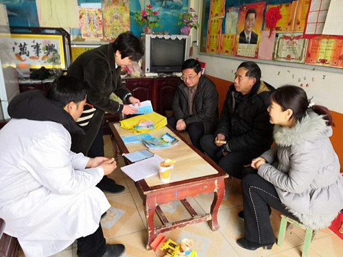 鄲城縣第二醫(yī)療健康服務(wù)集團副院長王景春、醫(yī)共體辦公室主任李慧滿與村醫(yī)入戶督導(dǎo)家庭醫(yī)生簽約服務(wù)情況。在醫(yī)務(wù)人員的引導(dǎo)下,村民們有序地排著隊,等待醫(yī)生們對其問診。