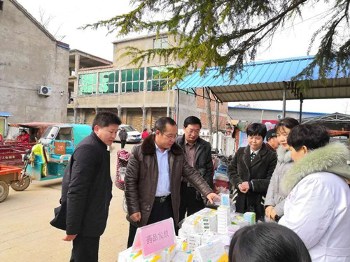 鄲城縣第二醫(yī)療健康服務(wù)集團副院長王海超、副院長王景春、錢店衛(wèi)生院院長李西鋒赴義診現(xiàn)場督導(dǎo)