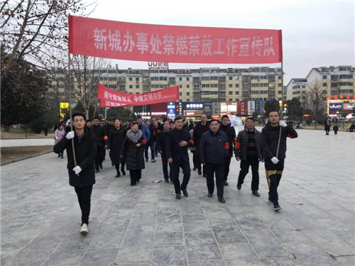 會后,黨工委書記張玉杰、辦事處主任王一博帶隊組織全體干部舉著橫幅,帶著紅袖標徒步10多公里,到鹿鼎建材城、農貿市場、世紀廣場、丁老家、張?zhí)枠?、羅堂社區(qū)等重點區(qū)域進行宣傳。