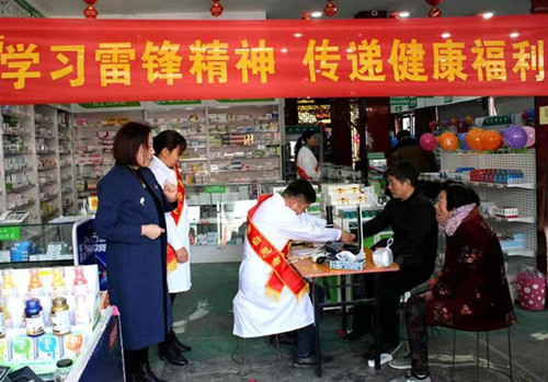 西華縣北華醫(yī)藥黨支部組織黨員志愿者為群眾量血壓、測(cè)血糖,免費(fèi)發(fā)放鈣片、提供茶水等義務(wù)服務(wù)活動(dòng)。