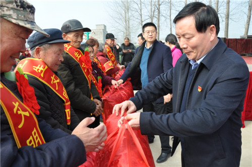 3月5日上午,商水縣化河鄉(xiāng)與縣移動公司在大王莊文化廣場召開脫貧光榮戶、孝老敬賢戶文明衛(wèi)生戶表彰暨送文化、衛(wèi)生下鄉(xiāng)活動議會。縣委常委、宣傳部長李本磊、縣工會主席盧紅兵、縣移動公司經(jīng)理黃小帆、化河鄉(xiāng)黨委書記高永強等出席活動現(xiàn)場。大王莊村及周邊村莊部分群眾500多人參加了活動。
