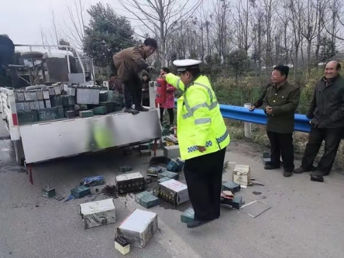3月13日下午14時45分,鄲城縣交警大隊治超中隊民警張鑫帶隊在汲冢萬樓卡點執(zhí)勤時,一名女司機將車輛停靠在萬樓卡點,急急忙忙下車向張鑫求助,稱在萬樓執(zhí)勤卡點東2公里路北處,一輛拉有電瓶的貨車因電瓶連線導致后車廂著火,司機和同行人員急得在路邊直哭。