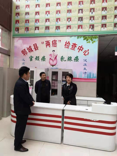 近日,鄲城縣副縣長肖煒、縣衛(wèi)計委主任付登霄一行,到鄲城縣婦幼保健院檢查指導(dǎo)“兩癌”免費篩查工作,該院院長亢國良、院工會主席楊敏陪同檢查。