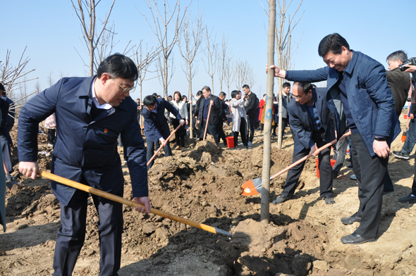 開工儀式結束后,與會領導在森林公園項目所在地參加植樹造林活動,為森林公園植上第一片新綠。