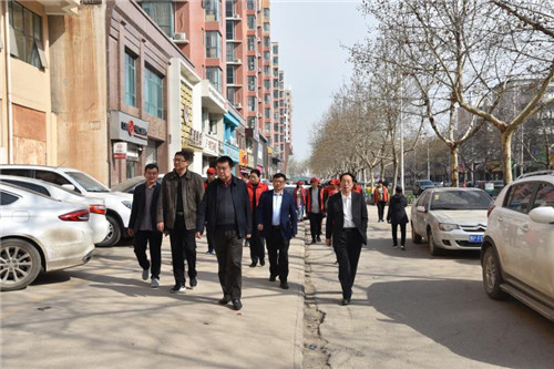 3月26日上午,川匯區(qū)政協(xié)主席張劍鋒,黨組副書(shū)記、副主席梁顯棟,副主席王建國(guó)、馬淮海到建安路檢查督導(dǎo)“市容工作日”活動(dòng)開(kāi)展情況。七一路辦事處主任王峰陪同檢查。