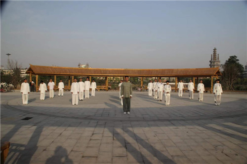在李廣的示范帶動(dòng)下,縣財(cái)政局先后又有10多人加入其中,形成了一個(gè)龐大的太極拳義務(wù)傳授團(tuán)隊(duì)。幾年來,李廣團(tuán)隊(duì)每天早晚堅(jiān)持頭頂著晨曦、沐浴著夕陽,義務(wù)傳授太極拳,弘揚(yáng)傳播老子文化,乘借著鹿邑既定的“產(chǎn)業(yè)興城、文化立縣”發(fā)展戰(zhàn)略東風(fēng),持續(xù)為唱響“老子故里、道家之源、道教祖庭、李姓之根”四大文化品牌添磚加瓦、吶喊助威。