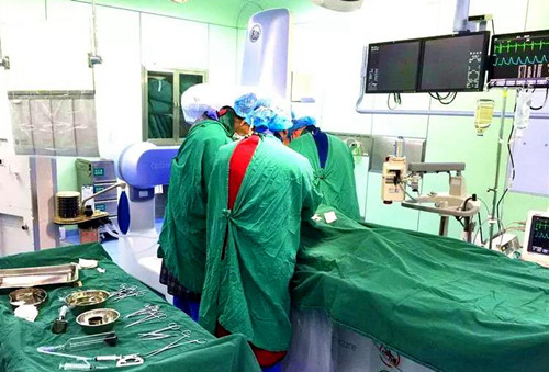 6時(shí)40分,護(hù)送患者的救護(hù)車從張完鄉(xiāng)出發(fā),沿醫(yī)共體縣鄉(xiāng)救治“綠色通道”直達(dá)縣人民醫(yī)院胸痛中心,人民醫(yī)院郭環(huán)宇醫(yī)生帶領(lǐng)介入團(tuán)隊(duì)早已萬(wàn)事俱備……入院后80分鐘,完成造影并開通血管,患者脫離生命危險(xiǎn)。術(shù)后患者胸痛立刻緩解,生命體征平穩(wěn),手術(shù)成功。