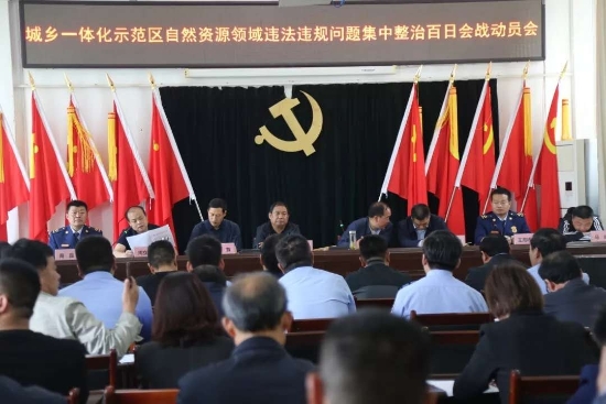 會(huì)上,區(qū)國(guó)土分局局長(zhǎng)周立新宣讀了《周口市城鄉(xiāng)一體化示范區(qū)自然資源領(lǐng)域違法違規(guī)問(wèn)題集中整治百日會(huì)戰(zhàn)工作方案》。