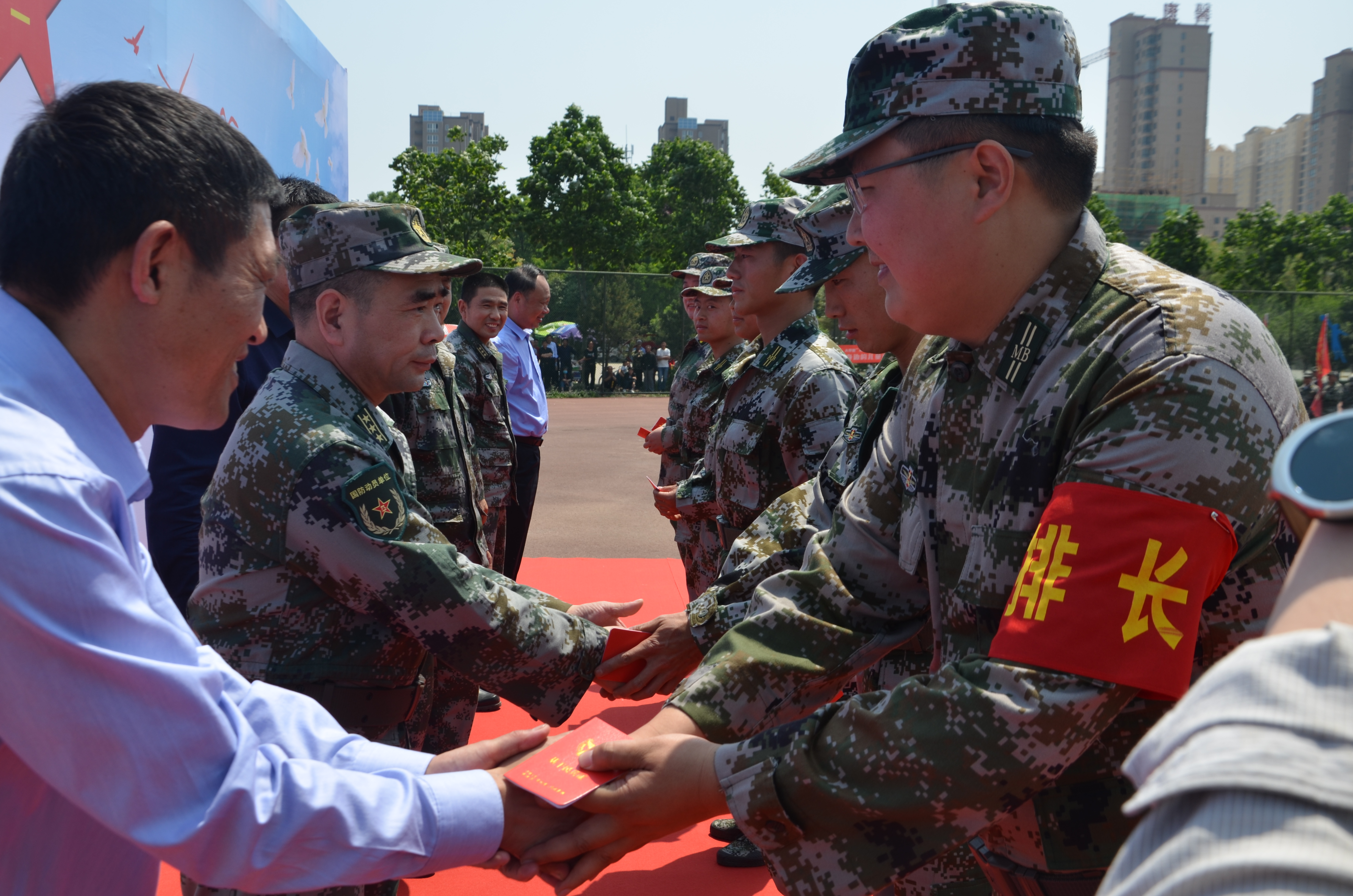 大會(huì)在雄壯的《解放軍軍歌》中拉開了序幕??h委常委、人武部政委曹新旺宣布基干民兵排以上干部任職命令,縣委常委、常務(wù)副縣長(zhǎng)郝四春代表縣委、縣政府、縣人武部為基干民兵分隊(duì)授旗,綜合應(yīng)急連指導(dǎo)員、縣人武部政工科長(zhǎng)李紅藝帶領(lǐng)全體民兵面對(duì)國旗宣讀民兵誓詞。在場(chǎng)領(lǐng)導(dǎo)向民兵代表發(fā)放了基干民兵證和入隊(duì)通知書,民兵代表和教練員代表分別進(jìn)行了表態(tài)發(fā)言。
