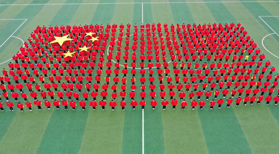 5月11日,扶溝縣中小學(xué)校足球聯(lián)賽暨中學(xué)生田徑運動會在縣秋實中學(xué)開幕。開幕式上,近4000名師生氣勢恢宏的大型團體操表演,展示了激情飛揚、活力四射的新時代精神風(fēng)貌。圖為縣回族小學(xué)表演的《同在陽光下》團體操。