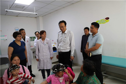 在縣人民醫(yī)院、周口永興醫(yī)院殘疾兒童康復機構,韓維俊看望慰問了正在機構康復治療的殘疾患兒。韓維俊每到一處都和患兒家長交流,仔細詢問患兒病情,鼓勵患兒親屬,為了孩子的未來要堅強,堅持康復治療,勉勵醫(yī)務人員要用真心、愛心、耐心對待工作,感謝他們對殘疾人事業(yè)做出的貢獻。