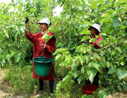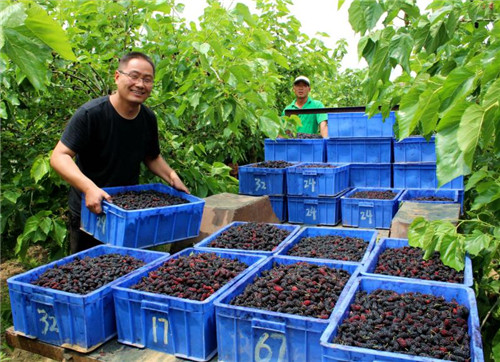 除此之外,桑果的采摘全靠人工,是勞動密集型產業(yè),需要大量當?shù)氐膭趧恿?,每到采摘季?jié),公司都會招用周邊200余名村民到種植基地務工,僅此一項,為每名務工人員人均增收3000余元?!鞍吃谝嫫飞i┓N植基地采摘桑椹,每天都有100多元的收入?!苯衲?3歲的黃橋鄉(xiāng)孫堤村留守婦女趙美容高興的說。