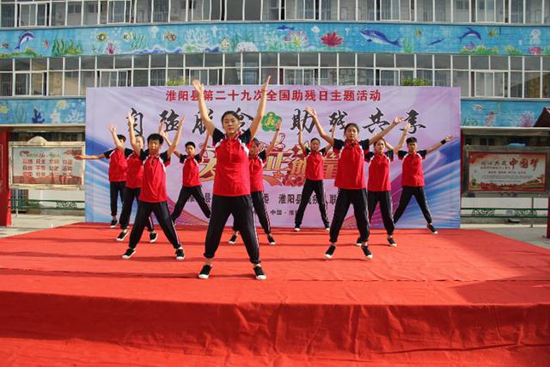 活動(dòng)儀式上,縣特殊教育學(xué)校學(xué)生和縣音樂(lè)家協(xié)會(huì)文藝志愿者分別為觀(guān)眾表演了精彩的文藝節(jié)目??h特殊教育學(xué)校的學(xué)生首先表演了舞蹈《海草舞》,文藝志愿者周紅春演唱了歌曲《愛(ài)的奉獻(xiàn)》、《天南地北淮陽(yáng)人》、李泉稼小朋友演唱了豫劇《洼洼地里好莊稼》,淮陽(yáng)特殊教育學(xué)校學(xué)生表演了節(jié)目《感恩的心》。精彩的表演贏得了現(xiàn)場(chǎng)觀(guān)眾的陣陣掌聲。