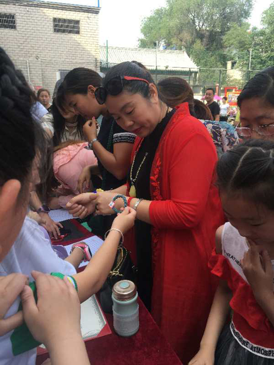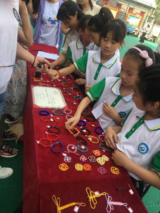5月25日上午,沈丘縣中國結(jié)第七代傳承人李海花走進(jìn)槐店鎮(zhèn)回民小學(xué),和學(xué)校“中國結(jié)”手工編織興趣班的20名學(xué)生舉行“愛心義賣,情暖校園”主題活動。不到半小時,100多件作品被搶購一空還預(yù)定了很多。據(jù)悉,這次義賣共得到1200余元,將全部捐給“槐店鎮(zhèn)中心學(xué)校教育基金”,用來資助該鎮(zhèn)經(jīng)濟(jì)困難師生、獎勵優(yōu)秀教師和學(xué)生、資助教育教研等重大活動項目。