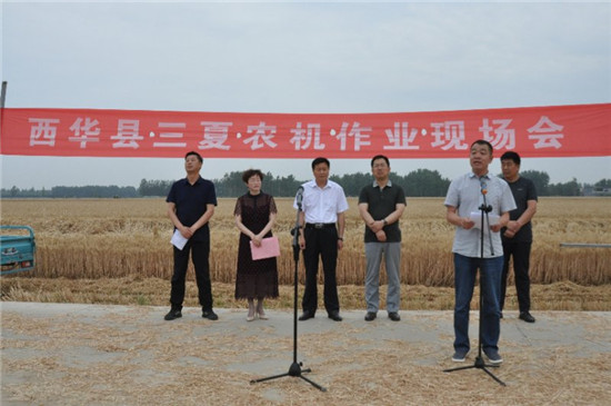 “麥浪滾滾閃金光,秣馬厲兵迎三夏”。值此三夏大忙到來之際,6月1日上午,西華縣農(nóng)機(jī)局在東王營鄉(xiāng)東王營村舉辦三夏農(nóng)機(jī)作業(yè)現(xiàn)場會,周口市農(nóng)機(jī)局黨組書記、局長劉偉,西華縣委副書記、政法委書記程維崢,縣政府副縣長毛茹,東王營鄉(xiāng)黨委、政府主要負(fù)責(zé)同志,各鄉(xiāng)鎮(zhèn)、辦事處分管農(nóng)業(yè)農(nóng)村工作副職,東王營鄉(xiāng)部分村支部書記,縣農(nóng)機(jī)局全體干部職工和部分農(nóng)機(jī)合作社理事長等共80余人參加了演示會。
