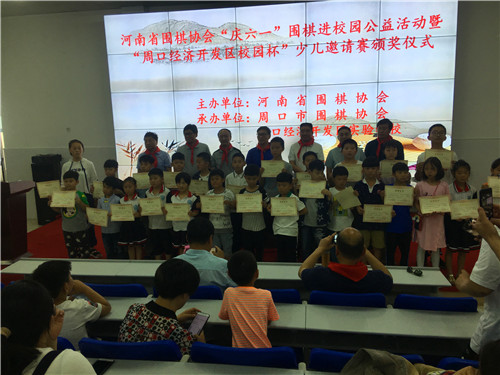 6月1日,省圍棋協(xié)會(huì)在周口經(jīng)濟(jì)開(kāi)發(fā)區(qū)實(shí)驗(yàn)學(xué)校舉行慶“六一”圍棋進(jìn)校園公益活動(dòng)暨校園杯圍棋邀請(qǐng)賽。省圍棋協(xié)會(huì)副會(huì)長(zhǎng)郭寶林、秘書(shū)長(zhǎng)袁曦、副秘書(shū)長(zhǎng)張新華,市工信委主任姚衛(wèi)田,周口圍棋協(xié)會(huì)有關(guān)領(lǐng)導(dǎo)參加。