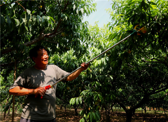 盛夏來臨,正值鮮桃豐收采摘的大好時節(jié),素有現(xiàn)實(shí)版“世外桃源”之美譽(yù)的西華縣黃橋鄉(xiāng)萬畝桃園果壓枝頭,滿眼水潤圓滾的鮮桃芳香四溢。