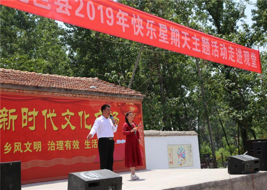 “這戲唱的真帶勁!聽得真癮!”雖然演出已經(jīng)結(jié)束,但郭窯村75歲的村民郭思勤依然坐在原地,久久不愿離去。 據(jù)悉,為確?!翱鞓沸瞧谔臁敝黝}活動(dòng)取得實(shí)效,鹿邑縣委宣傳部、統(tǒng)戰(zhàn)部高度重視,統(tǒng)籌各種資源,動(dòng)員全縣文聯(lián)和文藝八大協(xié)會(huì)等各方力量,創(chuàng)新活動(dòng)載體,豐富活動(dòng)形式,不斷深化群眾性精神文明創(chuàng)建活動(dòng),培育和踐行社會(huì)主義核心價(jià)值觀,不斷增強(qiáng)群眾的幸福感和獲感。鹿邑縣委宣傳部社宣科負(fù)責(zé)人寧偉在現(xiàn)場(chǎng)表示:“我們今年精心準(zhǔn)備了40場(chǎng)文藝大餐,每周都會(huì)組織文化、科技、醫(yī)療等戰(zhàn)線上的志愿者下鄉(xiāng)進(jìn)村進(jìn)行文藝演出、開展志愿服務(wù),讓基層的文化活動(dòng)更加豐富多彩,讓群眾在家門口就能享受到更多貼心的服務(wù)。”