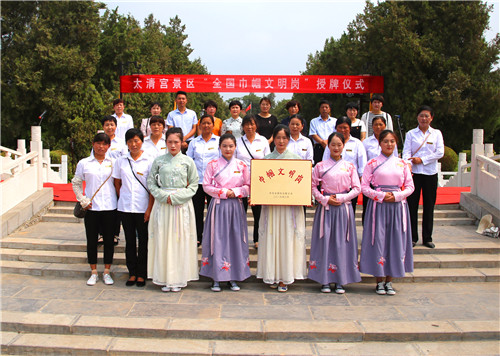 市婦聯(lián)副主席孫媛媛指出,多年來(lái),鹿邑縣委、縣政府高度重視婦女發(fā)展工作,為廣大女職工崗位建功、崗位成才提供了良好的環(huán)境,搭建了廣闊的舞臺(tái),激發(fā)了廣大女干部女職工的積極性和創(chuàng)造性。鹿邑縣婦聯(lián)創(chuàng)新思路、主動(dòng)作為,在引領(lǐng)廣大婦女聽(tīng)黨話跟黨走、組織婦女參與經(jīng)濟(jì)發(fā)展等方面,做了大量富有成效的工作,取得了顯著成績(jī),培樹(shù)出一批影響力大、服務(wù)水平高的先進(jìn)集體。鹿邑縣各行各業(yè)在崗女職工立足本職,愛(ài)崗敬業(yè),服務(wù)大局,無(wú)私奉獻(xiàn),為鹿邑縣的社會(huì)經(jīng)濟(jì)快速發(fā)展發(fā)揮獨(dú)特作用。太清宮景區(qū)經(jīng)理馬登領(lǐng)在儀式上做表態(tài)發(fā)言,表示將以這次授牌儀式為契機(jī),再接再厲,將“巾幗建功”活動(dòng)常態(tài)化、長(zhǎng)效化,保住“全國(guó)巾幗文明崗”這塊招牌,擦亮“全國(guó)巾幗文明崗”這塊招牌,讓全國(guó)“巾幗文明崗”這塊招牌在太清宮景區(qū)青春常駐,熠熠生輝。
