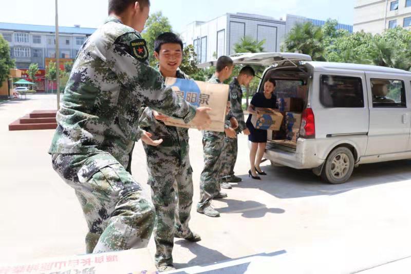 7月29日,太康縣清華園書店負責(zé)人李丹駕駛面包車,先后來到縣人民武裝部和消防大隊,為部隊官兵和消防指戰(zhàn)員送來礦泉水等。讓他們在高溫天氣里感受到清華園書店送來的絲絲清涼?!八麄兤匠S?xùn)練、滅火很辛苦,作為一個愛心企業(yè),關(guān)心部隊官兵是我應(yīng)盡的義務(wù)?!崩畹ばχf。
