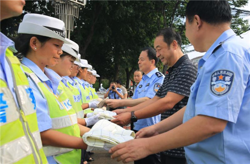 7月30日,扶溝縣總工會為酷暑堅(jiān)守一線崗位的公安交警,環(huán)衛(wèi)工人,紡織工人,安保公司、美團(tuán)外賣、申通快遞等企業(yè)公司工人送上礦泉水、洗潔精、毛巾等防暑降溫物品,受到歡迎。