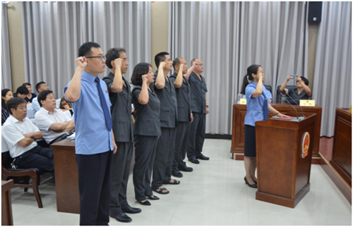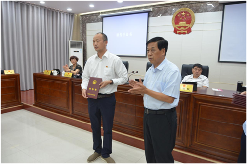 會議組織新任命的國家機關工作人員向憲法宣誓,李國際為新任命的國家機關工作人員頒發(fā)了任命書。