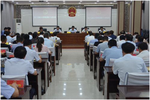 7月29日,鹿邑縣十五屆人大常委會舉行第十八次會議??h人大常委會主任李國際主持會議并講話,副主任王新民、肖西國、劉景山、劉銀和29名委員出席會議。