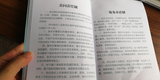 制度規(guī)定,服務(wù)對(duì)象到縣委組織部辦事、咨詢或來電時(shí),首個(gè)接待的工作人員必須熱情、禮貌、耐心接待辦理或引領(lǐng)交給相關(guān)職責(zé)科室辦理。凡符合規(guī)定,手續(xù)齊全的,限時(shí)辦結(jié),手續(xù)不全未能及時(shí)辦結(jié)的,要主動(dòng)向服務(wù)對(duì)象說明原因……縣委組織部常務(wù)副部長(zhǎng)薛斌告訴記者:“通過扎牢制度的籠子,讓部機(jī)關(guān)工作人員做到一張笑臉迎客,一把椅子讓座,一杯茶水暖心,一顆誠(chéng)心辦事,一流業(yè)績(jī)爭(zhēng)先的服務(wù)標(biāo)準(zhǔn),切實(shí)達(dá)到門好進(jìn)、臉好看、話好聽,事好辦的目的?!?/p>