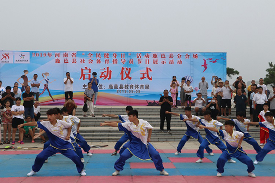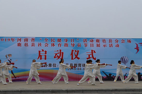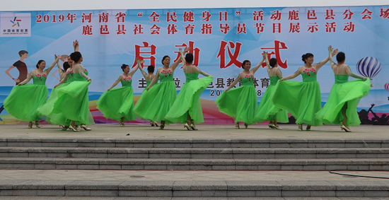 8月8日,鹿邑縣2019年“全民健身日”活動(dòng)啟動(dòng)儀式在上清湖文化廣場舉行。來自鹿邑民間的紅舞姿舞蹈隊(duì)的隊(duì)員們以一曲《讓中國更美麗》開場,給現(xiàn)場觀眾送上了一場精彩紛呈的“文藝大餐。