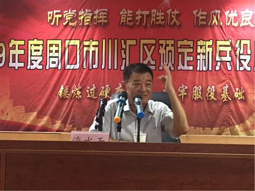 講到動(dòng)情處,海水干的眼里噙滿淚花。臺(tái)下掌聲雷動(dòng),表達(dá)著對老英雄的無限尊崇。海水干激勵(lì)廣大預(yù)定新兵到部隊(duì)后刻苦訓(xùn)練,不怕苦累,為周口爭光添彩,早日把立功受獎(jiǎng)。