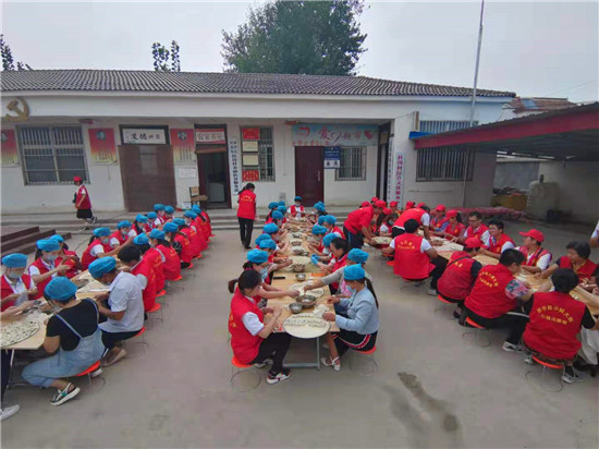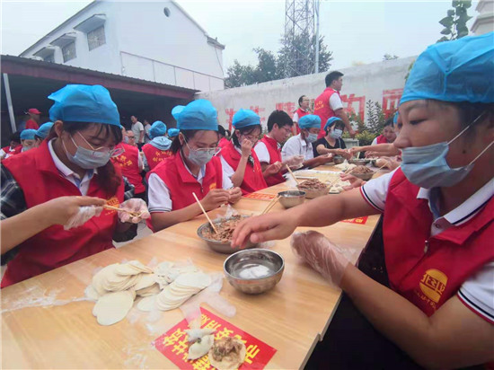 當(dāng)天上午,一場(chǎng)由周口市紀(jì)委監(jiān)委駐杜崗村工作隊(duì)聯(lián)合紅花鎮(zhèn)、杜崗村、周口北斗達(dá)教育集團(tuán)共同舉辦的孝老餃子宴,在該村文化廣場(chǎng)別開(kāi)生面地拉來(lái)序幕?!按謇锼?0歲(含60歲)以上的老人今天中午都到文化廣場(chǎng)來(lái)吃餃子啊,市紀(jì)委和愛(ài)心企業(yè)來(lái)為我們包餃子啦……”8時(shí)剛過(guò),杜崗村黨支部書(shū)記李長(zhǎng)青就通過(guò)村里的大廣播每隔半小時(shí)播報(bào)一次,生怕哪位老人忘了這檔子事兒。
