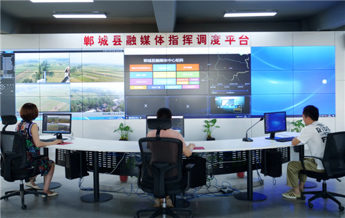 “要扎實抓好縣級融媒體中心建設,更好地引導群眾、服務群眾?!弊鳛槭〖壝襟w融合示范縣,鄲城縣委、縣政府高度重視媒體融合發(fā)展,縣委書記羅文閣、縣長李全林多次深入融媒體中心建設現(xiàn)場調(diào)研指導工作,并提出殷切期望。要求縣委宣傳部、融媒體中心組織專人負責、專業(yè)專攻、專題研究,走出去學習先進、坐下來結合實際、多動腦探索創(chuàng)新,“鄲城縣融媒體中心”于2018年10月建成,躋身全市融媒體建設第一方陣。2018年11月,河南省縣級新時代文明實踐中心、志愿服務中心、融媒體中心建設現(xiàn)場會在鄲城縣召開。
