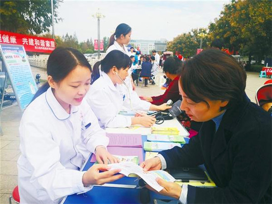 10月10日是世界精神衛(wèi)生日,當日上午9時至11時,周口市衛(wèi)健委組織我市28家醫(yī)院在川匯區(qū)文化廣場舉辦主題為“心理健康社會和諧,我行動”的義診活動。活動現(xiàn)場,100多名醫(yī)務(wù)人員向群眾提供免費疾病咨詢,宣傳普及精神衛(wèi)生健康醫(yī)學知識,紛紛開出身心健康處方,受到群眾的熱烈歡迎。