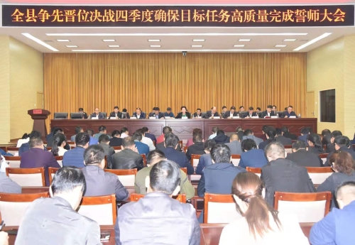 乘著周口市2019年第三季度項(xiàng)目觀摩的東風(fēng),扶溝吹響了決戰(zhàn)第四季度、奮力推動(dòng)經(jīng)濟(jì)社會(huì)高質(zhì)量發(fā)展的“沖鋒號(hào)”。10月21日,扶溝縣召開爭先晉位決戰(zhàn)四季度確保全縣目標(biāo)任務(wù)高質(zhì)量完成誓師大會(huì),深入貫徹習(xí)近平總書記在河南考察調(diào)研指示精神,動(dòng)員全縣上下進(jìn)一步認(rèn)清形勢(shì),堅(jiān)定信心,鼓足干勁,加大力度,大干苦干,決戰(zhàn)決勝,全力以赴做好第四季度工作,確保全年目標(biāo)任務(wù)高質(zhì)量完成。張穎波、詹凱、姜永來、張建中等縣四個(gè)班子領(lǐng)導(dǎo)出席會(huì)議。縣委副書記、政法委書記詹凱主持會(huì)議。