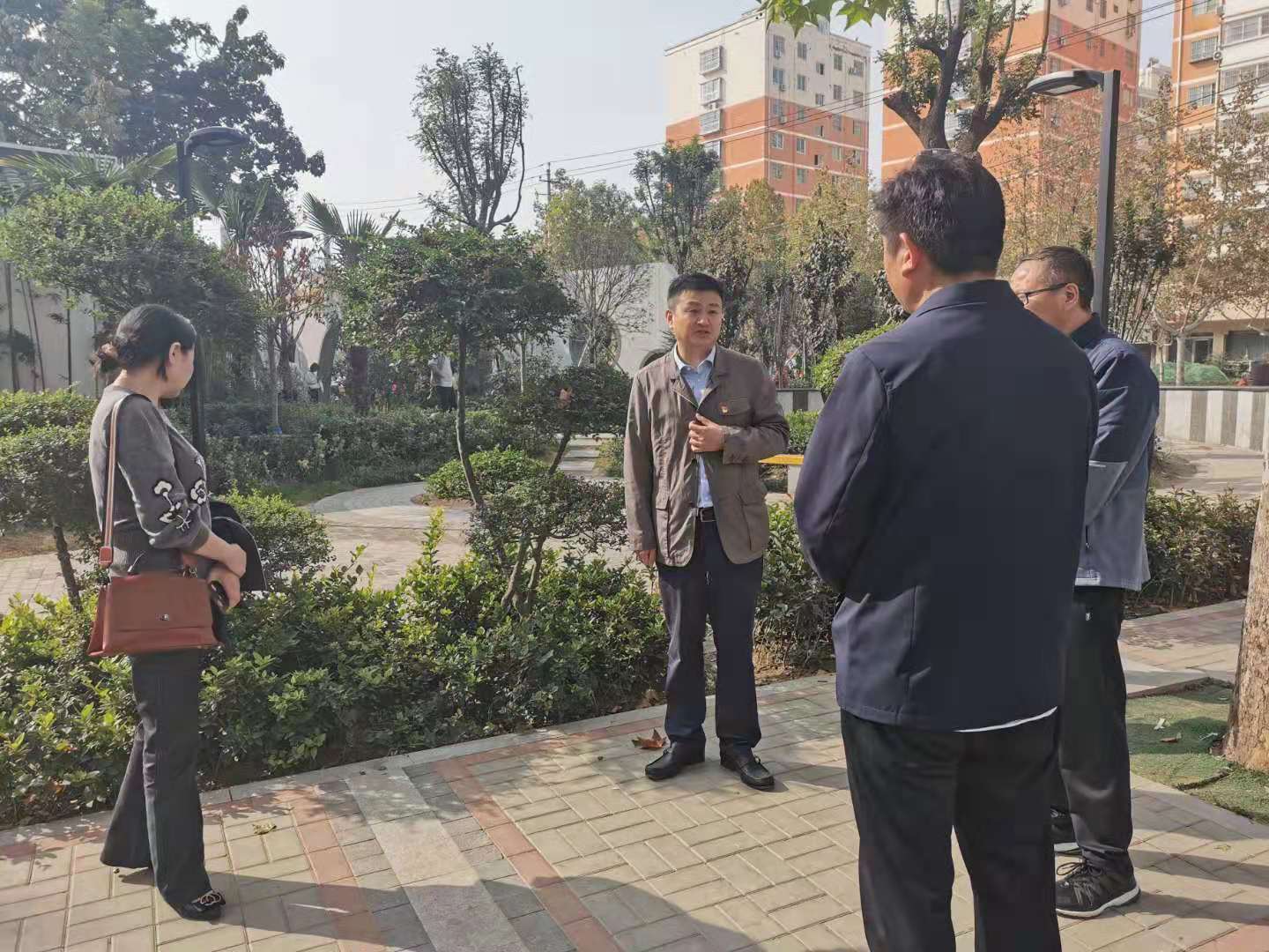 李湛還到關帝廟廣場查看樹穴美化工作,并提出指導意見。