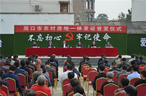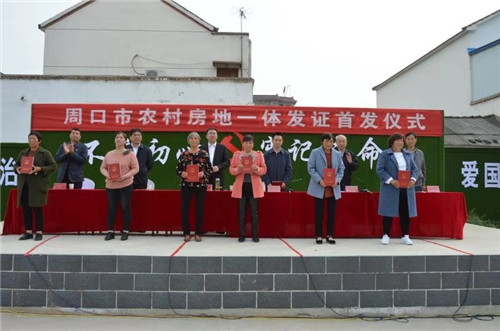 10月24日,周口市農(nóng)村“房地一體”不動(dòng)產(chǎn)權(quán)證書(shū)首發(fā)儀式在淮陽(yáng)縣白樓鎮(zhèn)大郝村舉行,周口市自然資源和規(guī)劃局黨組成員、副局長(zhǎng)劉東明、淮陽(yáng)縣委常委李祥生等領(lǐng)導(dǎo)為首批農(nóng)房權(quán)利人頒發(fā)不動(dòng)產(chǎn)權(quán)證書(shū)。