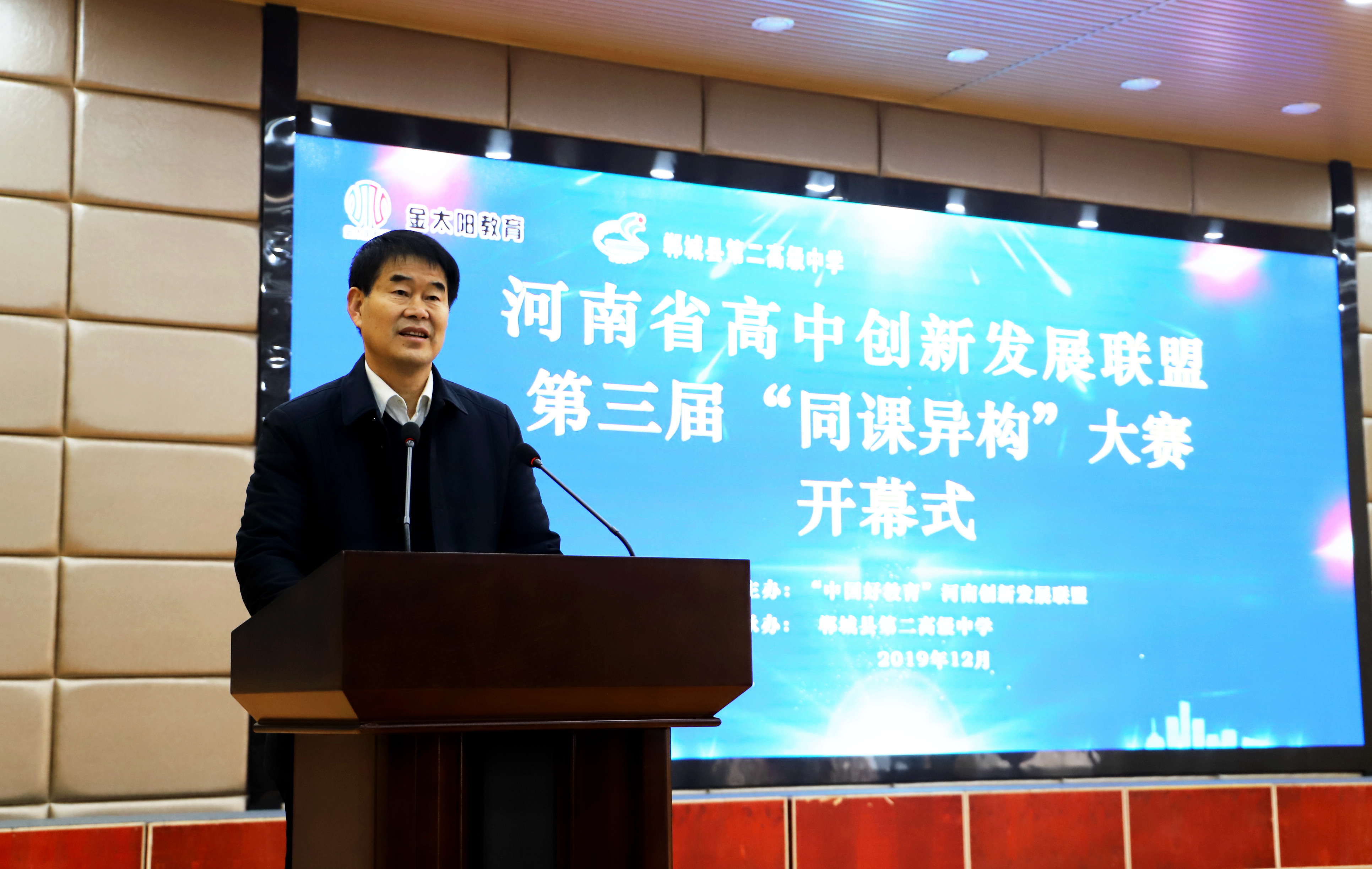 12月7日,由河南省高中創(chuàng)新發(fā)展聯(lián)盟主辦、鄲城二高承辦的全省第三屆“同課異構(gòu)”大賽開幕。鄲城縣教體局黨組書記、局長劉現(xiàn)營出席開幕式并致詞。來自全省15個縣市區(qū)的高中代表隊將在3天賽期內(nèi)各展風采,共通思想、共享智慧、共融發(fā)展。