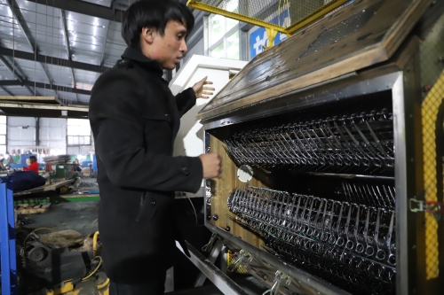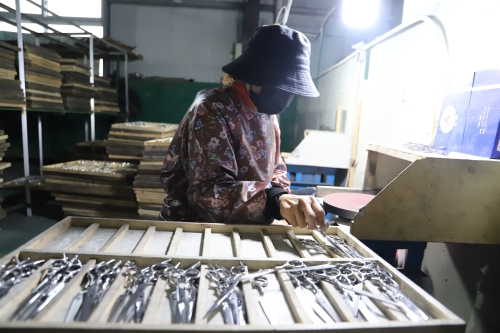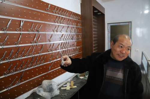 “我也是從小就外出,一直在江蘇蘇州發(fā)展,做刀剪十幾年了?,F(xiàn)在家鄉(xiāng)環(huán)境好,回來發(fā)展比在南方還有前途?!苯衲?9歲的陳政治老家是虎崗鄉(xiāng)陳莊村。被虎崗鄉(xiāng)黨委政府的誠意所感動(dòng),他很樂意回鄉(xiāng)發(fā)展,因?yàn)榉孔鈨r(jià)格低、務(wù)工人員穩(wěn)定,營商環(huán)境又好,所以他帶著自己的外甥楊亞杰和技術(shù)團(tuán)隊(duì)回到老家鄲城,還能助力家鄉(xiāng)經(jīng)濟(jì)發(fā)展。陳政治說,他的廠子所生產(chǎn)的東升、jack、亞寶等品牌刀剪全部銷往全國高檔理發(fā)店,產(chǎn)品供不應(yīng)求。像這樣的高檔刀剪生產(chǎn)廠家,在中原地帶極少。剛投產(chǎn)幾個(gè)月,他已經(jīng)接到了來自韓國、日本等地的訂單。