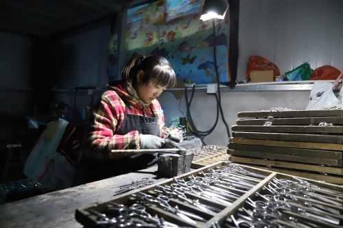 “感謝黨委政府在俺村口建扶貧車間呀。上個(gè)月領(lǐng)了6700元,工資不低吧?哈哈……”12月9日,鄲城縣虎崗鄉(xiāng)王寨行政村扶貧車間門口笑聲朗朗,王寨村王桂榮正在和同事分享幸福。和王桂榮一樣,該村及周邊村60多位“留守婦女”在這里找到了高薪工作。