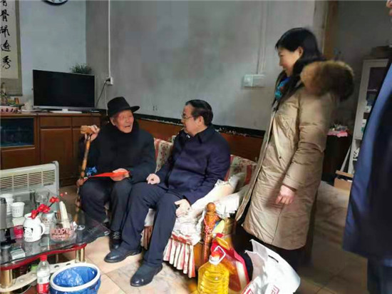 在鹿邑縣中心敬老院娛樂(lè)室內(nèi),劉國(guó)連、胡軍與老人一一握手,向老人們?cè)儐?wèn)吃的好不好、住的暖不暖、年貨全不全。同時(shí)叮囑養(yǎng)老院負(fù)責(zé)人要照顧好老人們,讓他們過(guò)上一個(gè)歡樂(lè)祥和的春節(jié)。