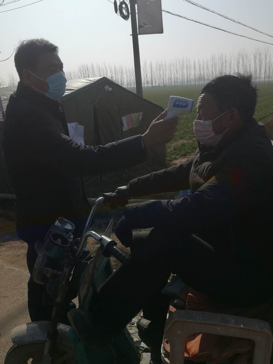 由于物資未曾到位,檢測(cè)點(diǎn)僅簡(jiǎn)單搭了一頂四面透風(fēng)的帳篷,紀(jì)占東跟其他工作人員一起在寒風(fēng)中檢查登記出入人員、測(cè)量體溫,天氣寒冷,吃飯也只能用饅頭、泡面對(duì)付,但是內(nèi)心是火熱的。紀(jì)占東說(shuō)在防控工作中,絕大部分群眾理解和支持的,有群眾在家里燒好開水給值班人員送,還有的群眾送來(lái)暖手寶、熱氣騰騰的飯菜......這些都是他工作的動(dòng)力和源泉。