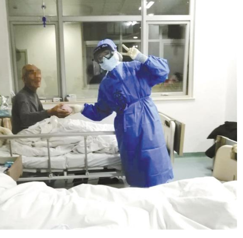 “這是我們應(yīng)該做的工作。您辛苦了,一定要加油哦?!弊鐾隀z測、量完體溫,胡奔奔將9號床患者的手輕輕放進被子,并為他掖了掖被角。