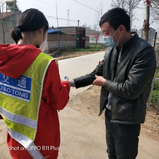 按照分工,劉苗苗在村防疫卡點(diǎn)負(fù)責(zé)村里疫情排查工作。為了做到排查不漏一戶、宣傳不漏一人,防控不染一人。她挨家挨戶、如同警察查戶口,嚴(yán)肅認(rèn)真。在排查中,她發(fā)現(xiàn)該村竟然有三人是從湖北武漢疫區(qū)回鄉(xiāng)人員,隱患不除,后患無窮。這三人成了她重點(diǎn)關(guān)注的對象。一天三次登門給他們測試體溫,勸誡他們在家隔離,自覺做到不出門、不串門,關(guān)心他人就是關(guān)心自己,一人不感染,全村都安全。看到一名女大學(xué)生冒著風(fēng)險服務(wù)大家都很受感動,村民們自覺在家防感染,沒有非法聚集、扎堆聊天等現(xiàn)象發(fā)生。