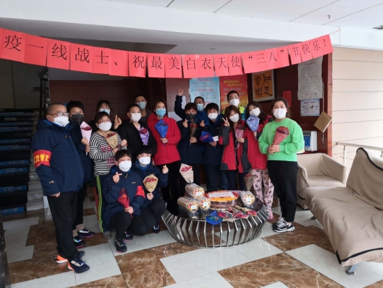 醫(yī)療隊(duì)員們?cè)诳挂咭痪€度過“三八”婦女節(jié)