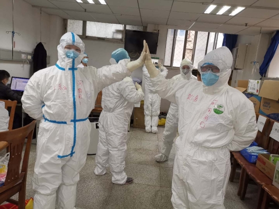 3月3日,周口市第三批援鄂醫(yī)療隊(duì)慷慨出征,這支醫(yī)療隊(duì)由周口港區(qū)醫(yī)院8位醫(yī)護(hù)人員組成,當(dāng)晚抵達(dá)武漢,經(jīng)過幾個(gè)小時(shí)的培訓(xùn),對(duì)專業(yè)防護(hù)流程進(jìn)行了優(yōu)化。第二天,周口港區(qū)醫(yī)院醫(yī)療隊(duì)正式進(jìn)駐武漢商職醫(yī)院,當(dāng)天下午開展新冠肺炎患者的救治和護(hù)理工作。