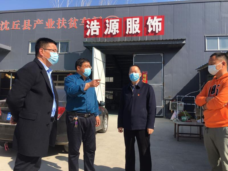 為貫徹落實上級檢察機關(guān)疫情防控期間積極服務(wù)保障復工復產(chǎn)的有關(guān)精神,保障疫情防控與脫貧攻堅工作兩手抓、兩不誤,近日,沈丘縣人民檢察院黨組書記、檢察長李世龍率隊深入到大邢莊鎮(zhèn)宋莊、清涼寺、西李莊三個扶貧車間走訪調(diào)研,查看疫情防控措施、復工復產(chǎn)等情況,詳細了解并積極解決企業(yè)復工復產(chǎn)中存在的困難及訴求,向企業(yè)贈送一批口罩、消毒液等防疫物資。
