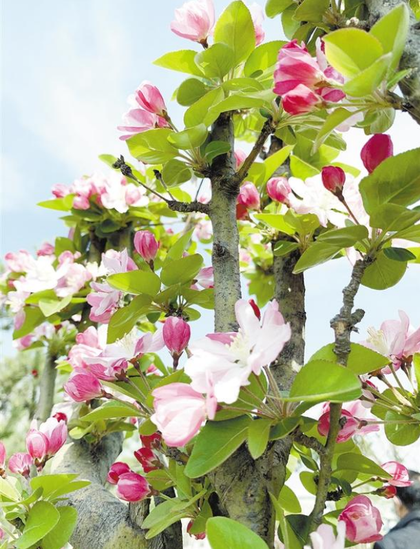 海棠花姿瀟灑、花開似錦,自古以來是雅俗共賞的名花,素有“花中神仙”“花貴妃”“花尊貴”之稱。海棠還有“國(guó)艷”之譽(yù),在皇家園林中,它常與玉蘭、牡丹、桂花相配植,形成“玉堂富貴”的意境。