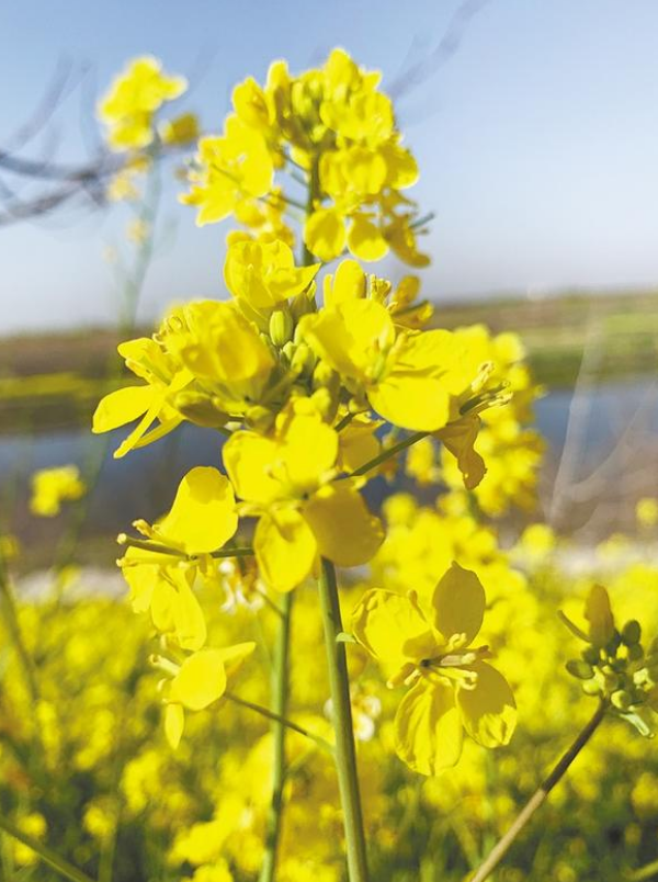 進(jìn)入油菜開花時節(jié),田野間一片金黃。油菜花競相怒放,千姿百態(tài),花團錦簇,放眼望去,花海十分壯觀,大地都像披著一塊金黃的地毯。花粉中含有豐富的花蜜,引來彩蝶與蜜蜂飛舞,美麗風(fēng)景讓人流連。