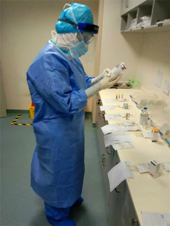 周口市中心醫(yī)院心血管內(nèi)科三病區(qū)護(hù)士孫慧慧是周口援鄂醫(yī)療隊(duì)第一個(gè)上“治療+辦公班”的護(hù)士?!翱赡苄陆?duì)的老師知道我們兩家醫(yī)院使用的是同一個(gè)數(shù)字化醫(yī)療處理系統(tǒng),我又經(jīng)常上辦公班的緣故吧。”孫慧慧說,“簡(jiǎn)單來說,辦公班負(fù)責(zé)處理醫(yī)囑,治療班負(fù)責(zé)配兌藥物。在這里,一個(gè)人要擔(dān)負(fù)起這兩個(gè)職能。”