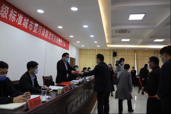 城關(guān)鎮(zhèn)、縣城管局、縣市場(chǎng)監(jiān)管局3家單位主要負(fù)責(zé)人和縣1家城市保潔公司,圍繞創(chuàng)建國(guó)家空氣質(zhì)量二級(jí)標(biāo)準(zhǔn)城市工作相繼作表態(tài)發(fā)言。各鄉(xiāng)鎮(zhèn)黨委書(shū)記分別向縣委書(shū)記王國(guó)璽遞交創(chuàng)建保證書(shū)。